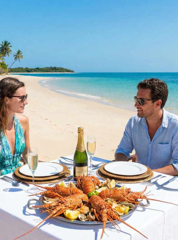 Indulge in the ultimate luxury with our private excursion to Santa Carolina (Paradise Island). This exclusive package is designed for those seeking privacy and premium service. You will enjoy a dedicated boat for your group, a private beach spot away from the crowds, and a gourmet seafood buffet that includes fresh lobster. Celebrate the day with chilled Champagne and beer while your personal tour guide leads you to the best snorkeling spots. From the welcome drink to a special gift from Vilankulo, every detail is crafted to provide an unforgettable VIP experience.